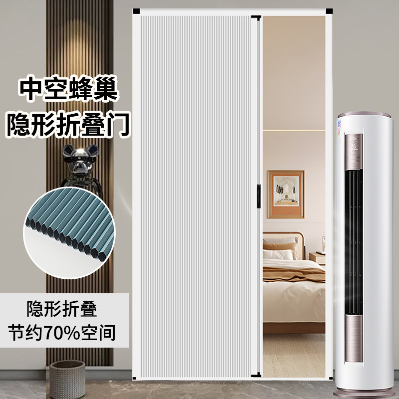 无轨蜂巢帘保温折叠门隐形推拉门家用帘子厨房遮挡帘上下拉伸缩门