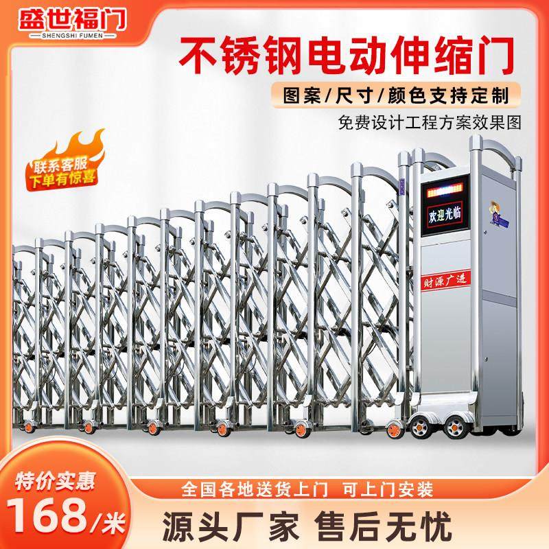 直销304不锈钢伸缩门电动大门折叠工厂小区工地学校自动收缩推拉