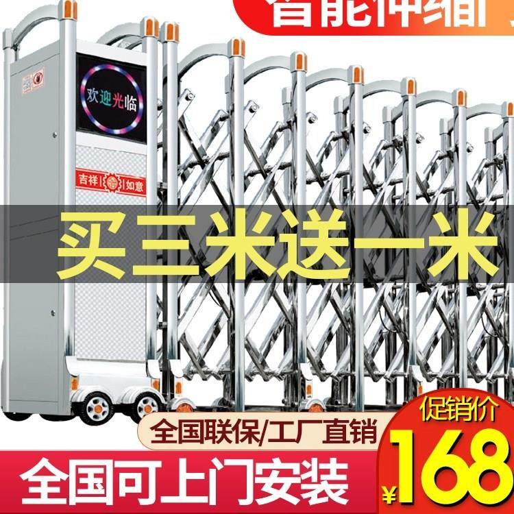 电动伸缩门大门推拉门无轨学校工厂工地遥控折叠自动不锈钢收缩门
