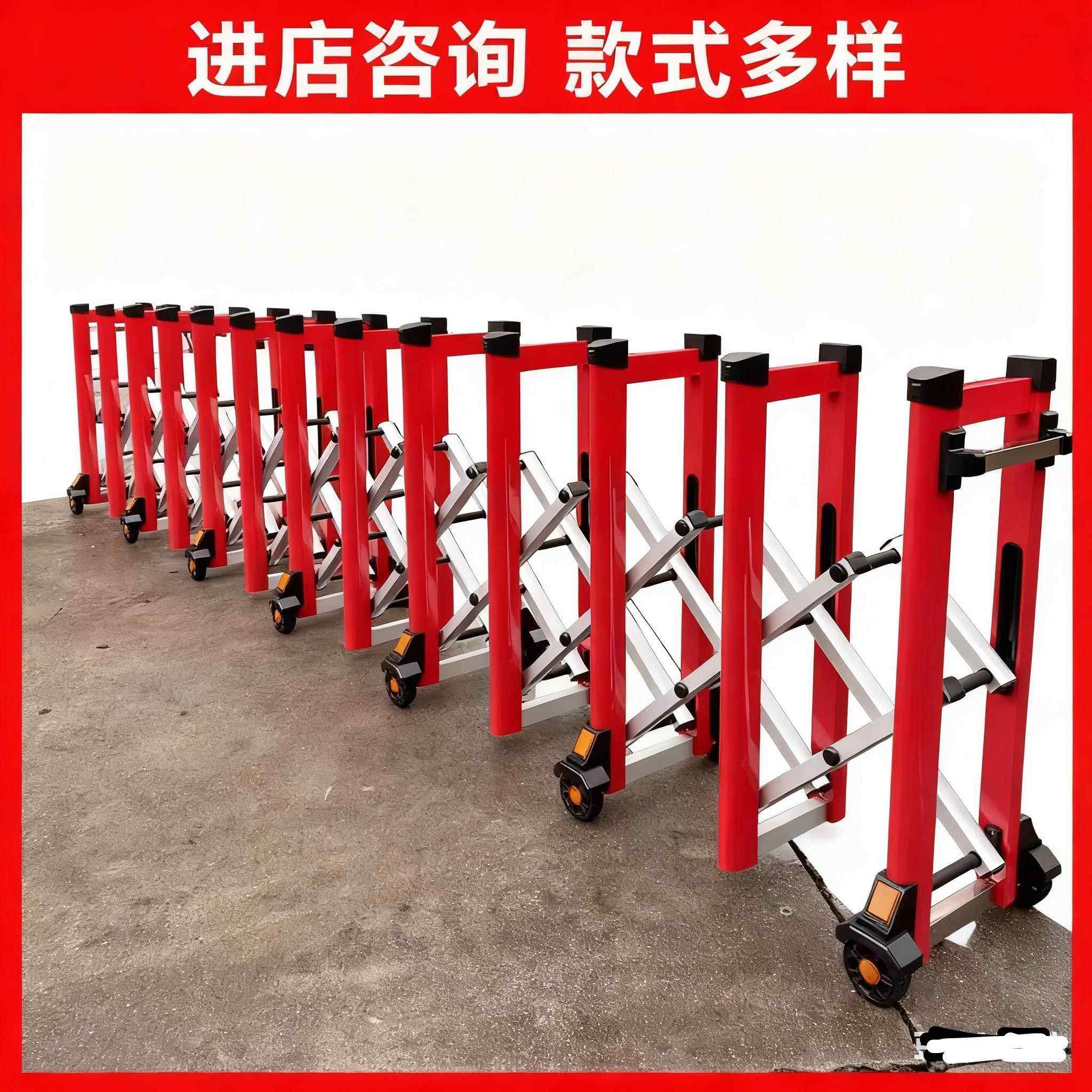 铝合金手动推拉伸缩门高速路障移动护栏围栏不锈钢折叠收缩隔离栏