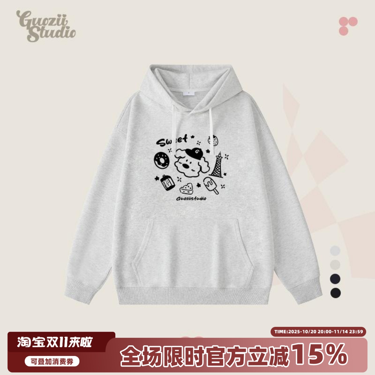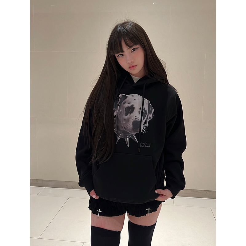 小尼力斑点狗连帽卫衣男女2025新款学院风情侣宽松套头帽衫秋冬季
