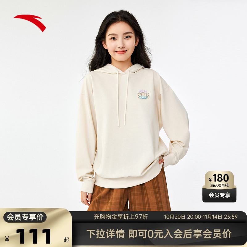 安踏学院风连帽卫衣女款冬季宽松圆领套头衫长袖休闲百搭运动上衣