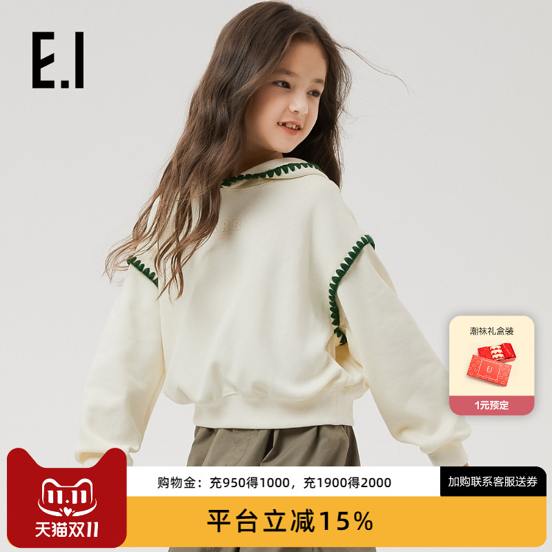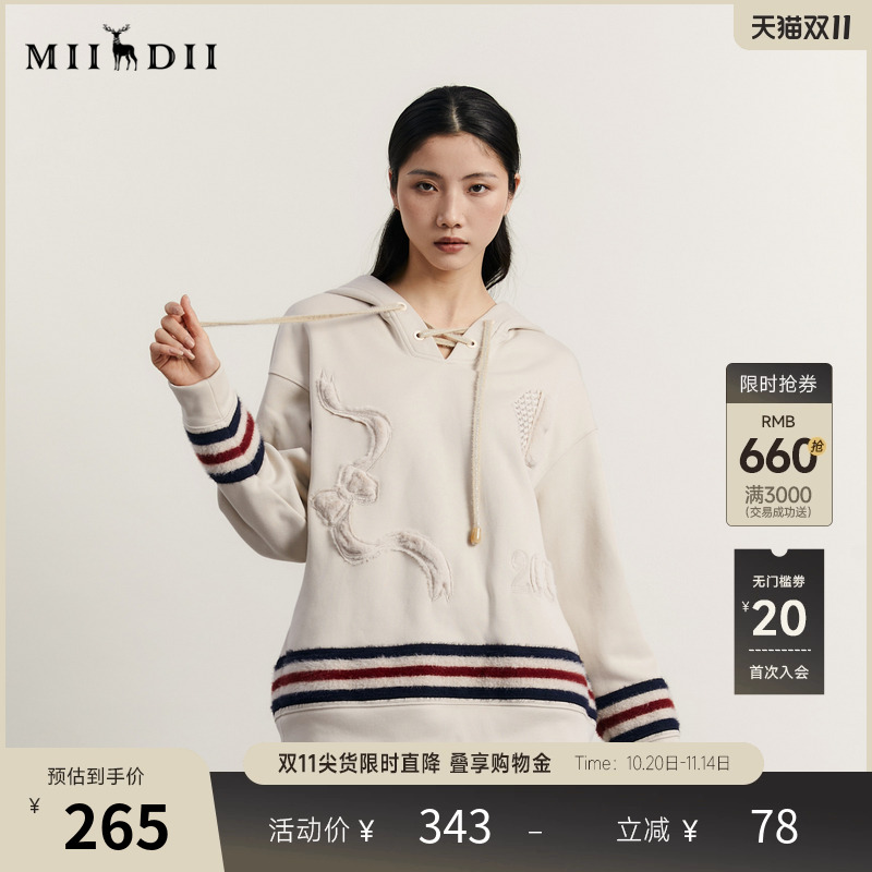 谜底连帽套头卫衣女设计感冬季学院风加厚宽松绣花上衣234MV1557