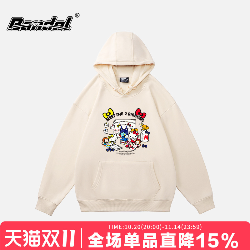 chic日系卡通学院风元气少女感杏色连帽卫衣女奶fufu套头上衣春秋