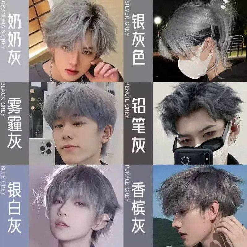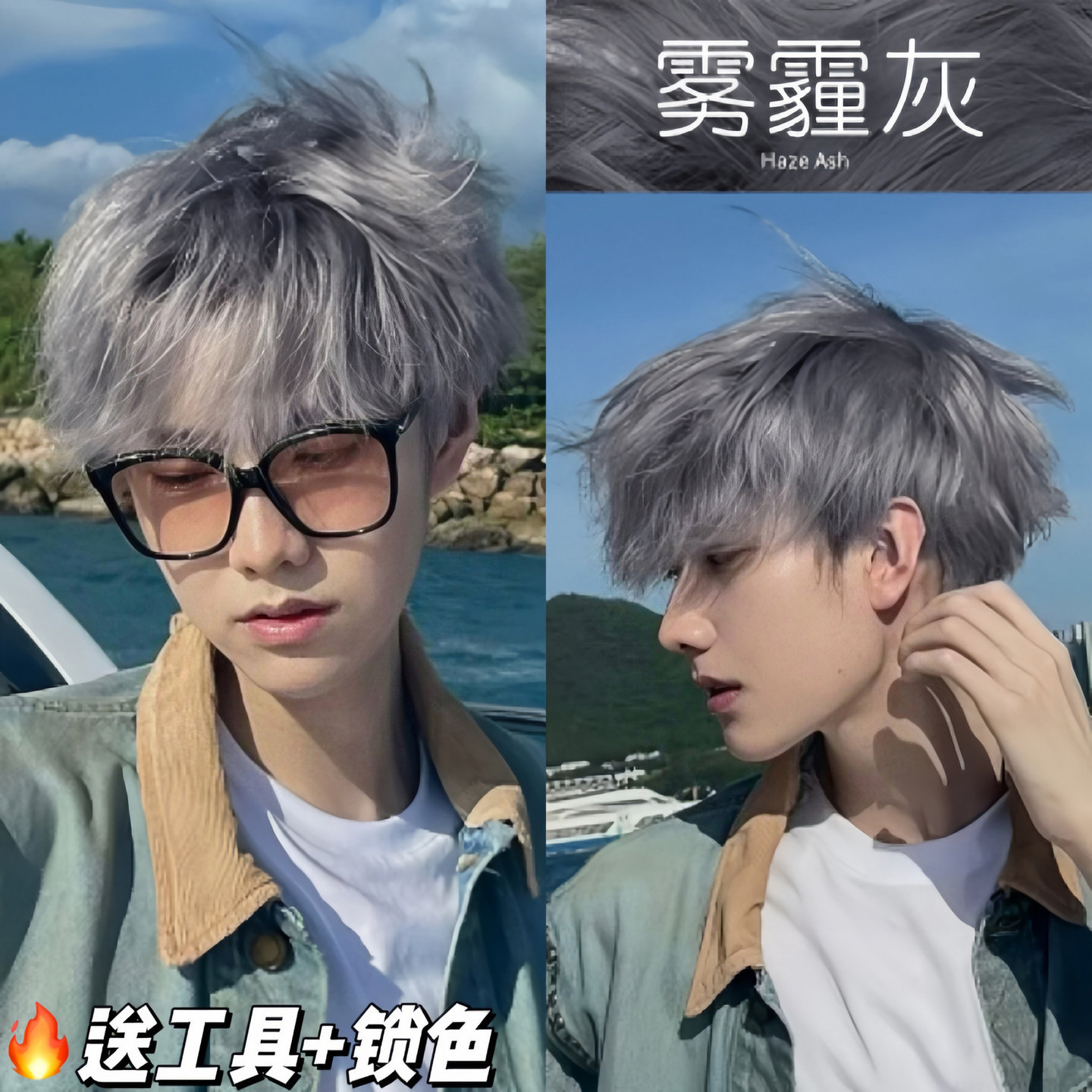 银灰色男士专用灰色染发剂雾霾灰奶奶灰烟灰蓝灰色染发膏男生专用