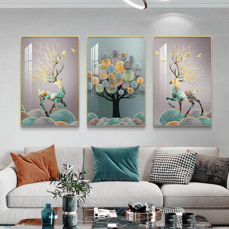 钻石客厅三联画水晶瓷画钻石沙发装饰画无障碍豪华家庭电视背景墙