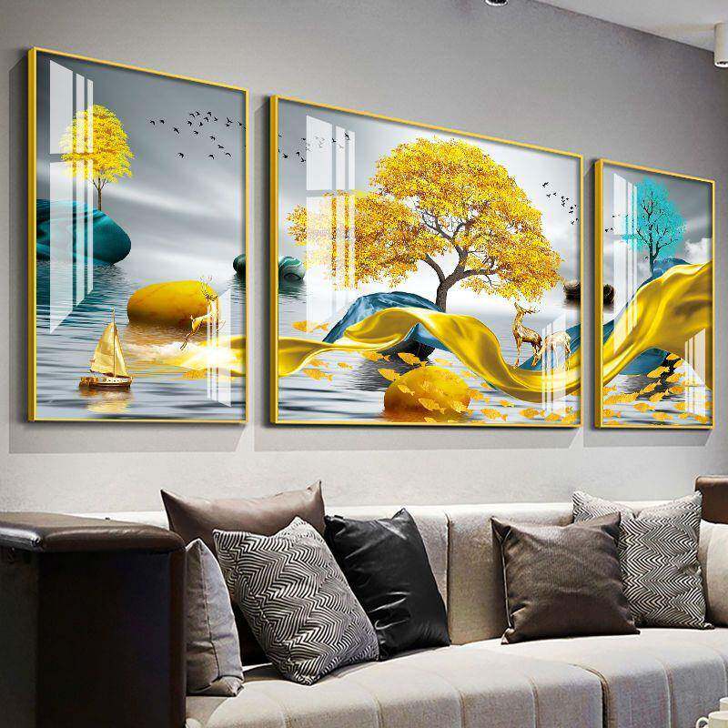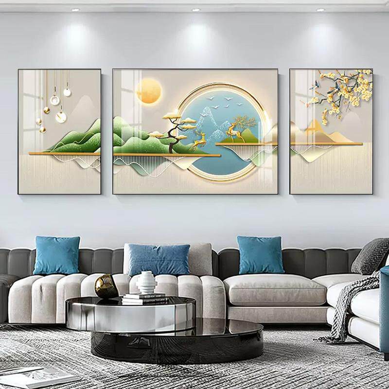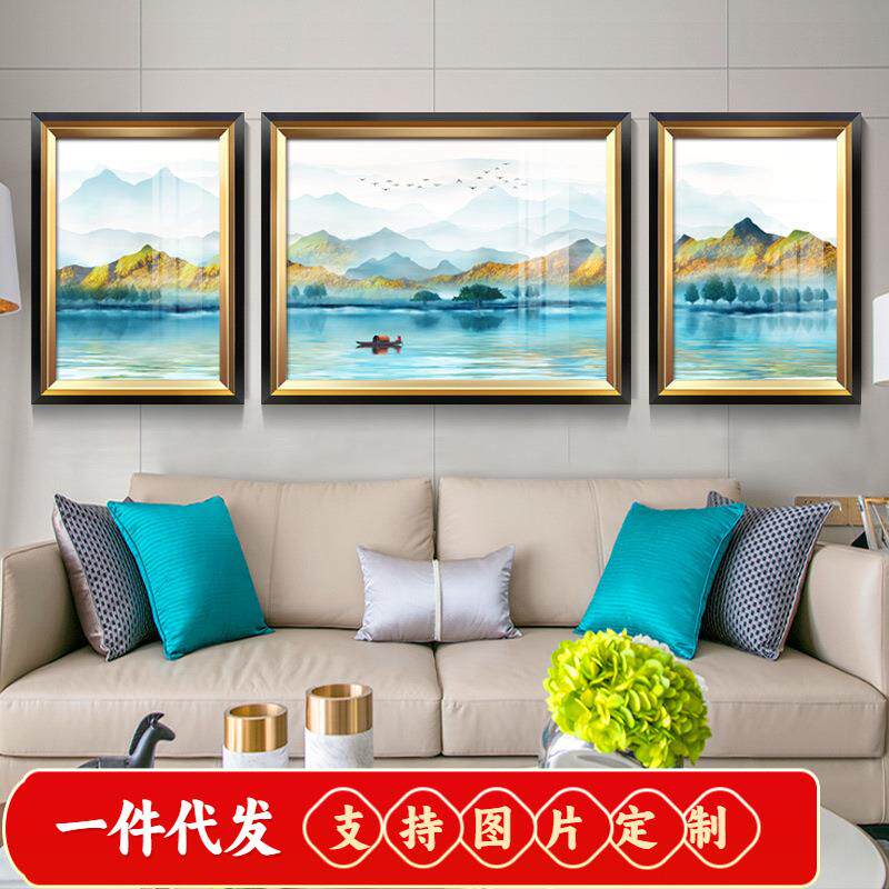 轻奢客厅装饰画沙发背景墙钻石三联画现代简约山水挂画新款晶瓷画