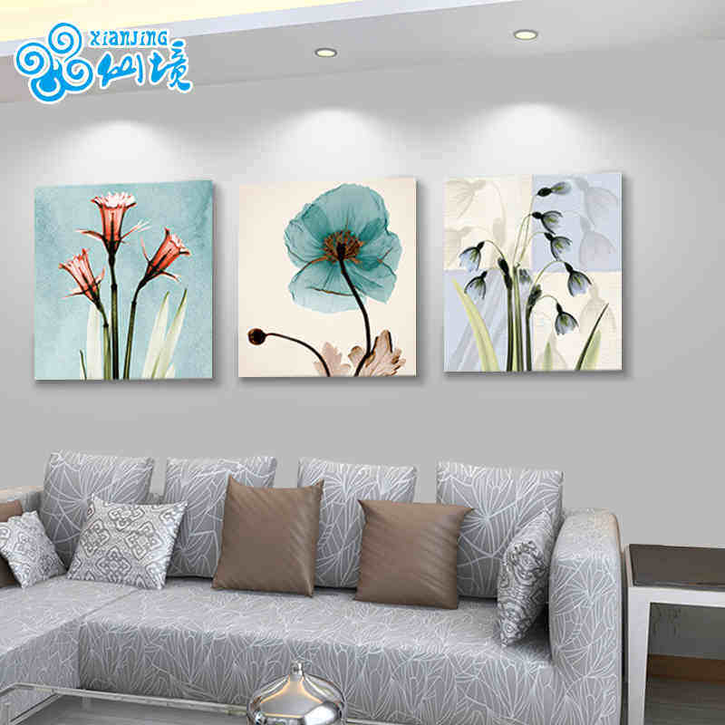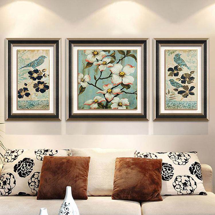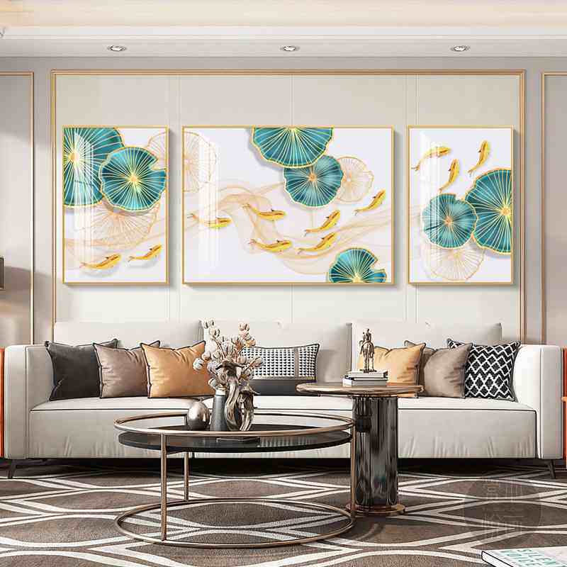 客厅装饰画沙发背景墙壁画挂画三联画现代简单优雅平易奢华钻石水