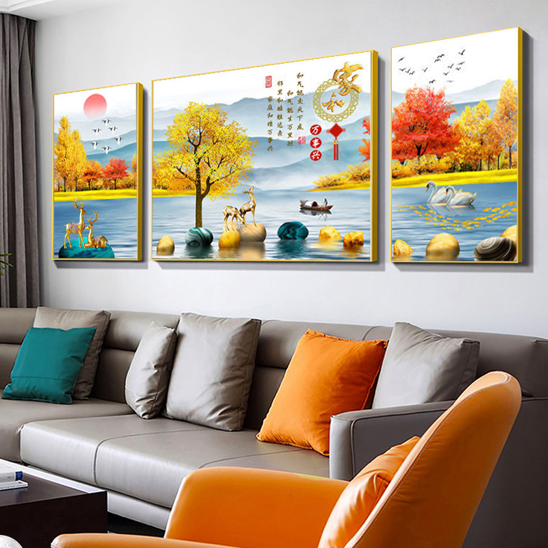 2024新款三联画钻石画沙发背景墙挂画钻石绣手工粘贴满钻圆钻北欧