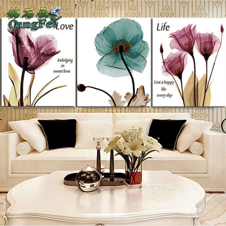 热销贴钻十字绣抽象花卉5d钻石画满钻石绣客厅餐厅现代三联画2019
