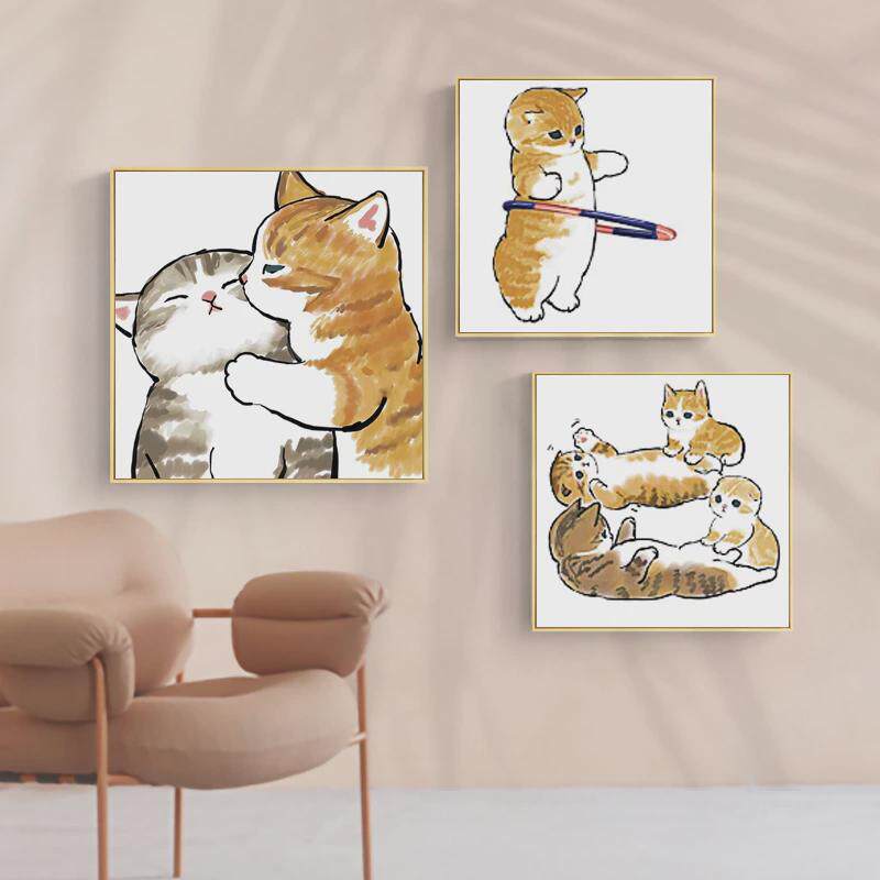 26n钻石画2024新款卧室砖石三联画贴画猫咪儿童小件贴钻十字绣小