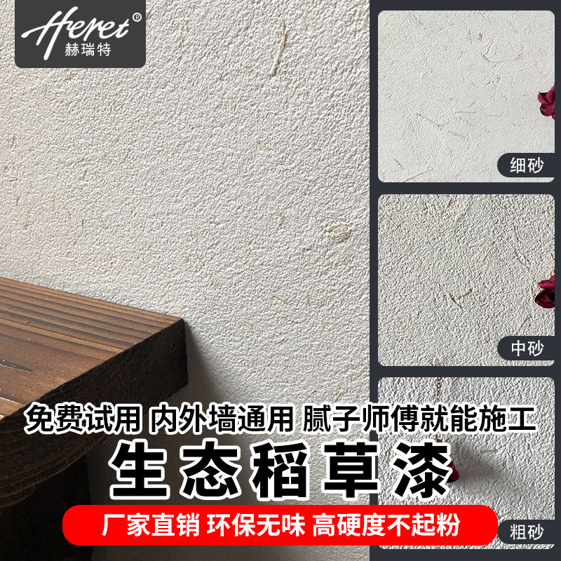 赫瑞特生态稻草漆干粉硅藻稻草泥漆室内背景墙面复古环保艺术涂料