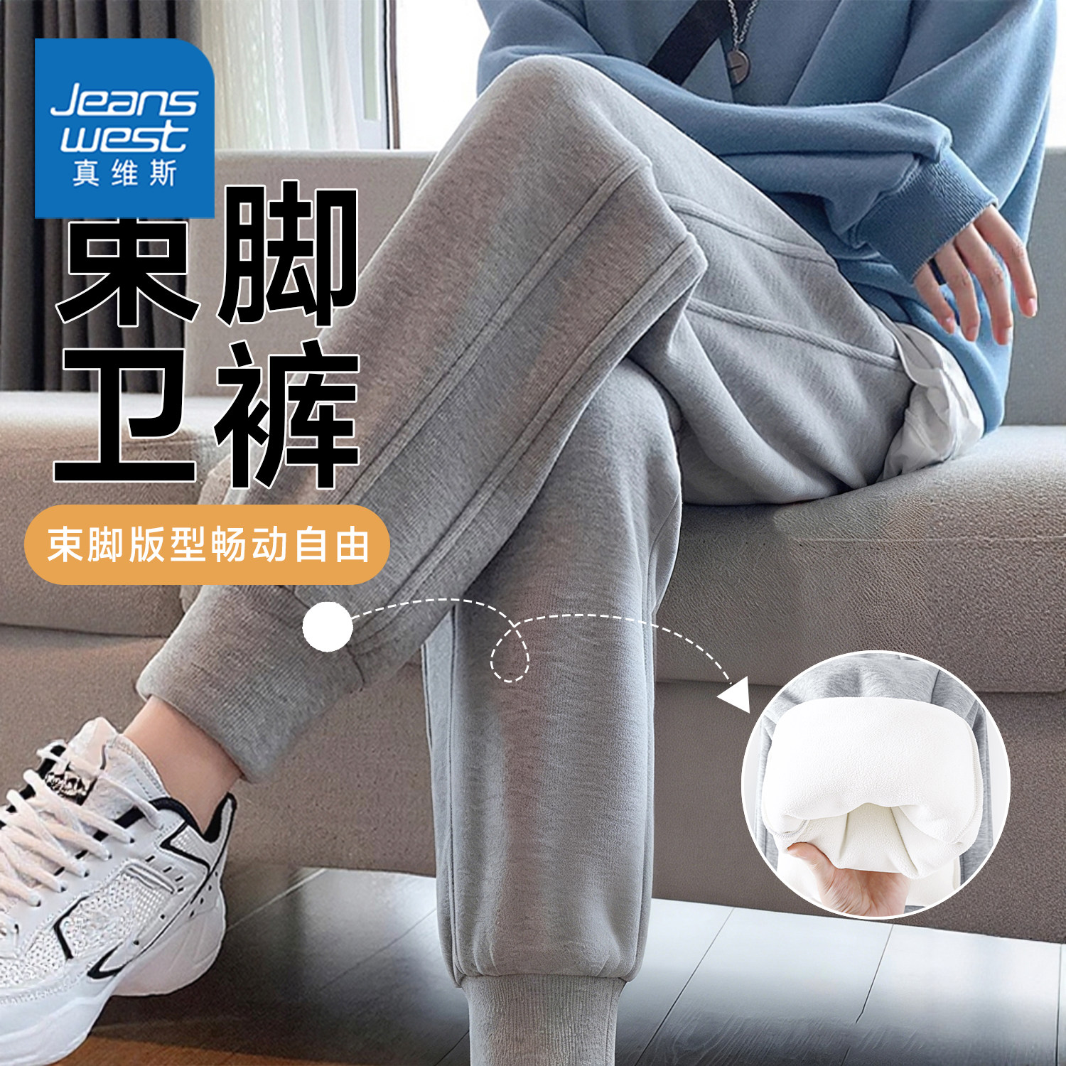 真维斯秋冬灰色休闲运动裤子女2026新款加绒加厚宽松大码束脚卫裤