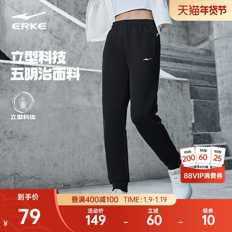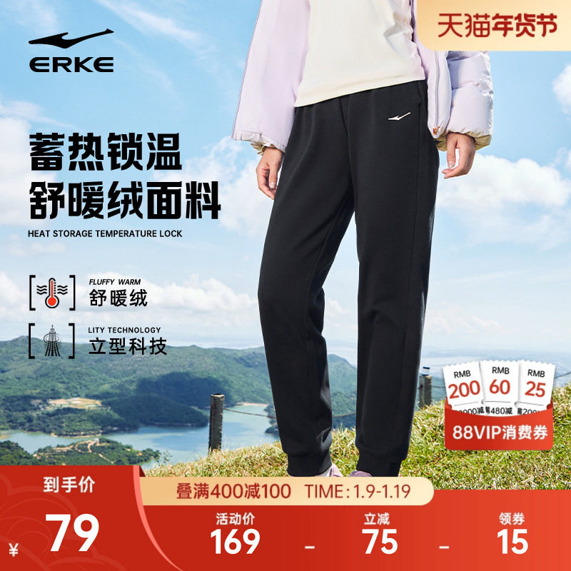 鸿星尔克运动裤女冬季新款女款加厚卫裤黑色长裤女士加绒裤子女裤