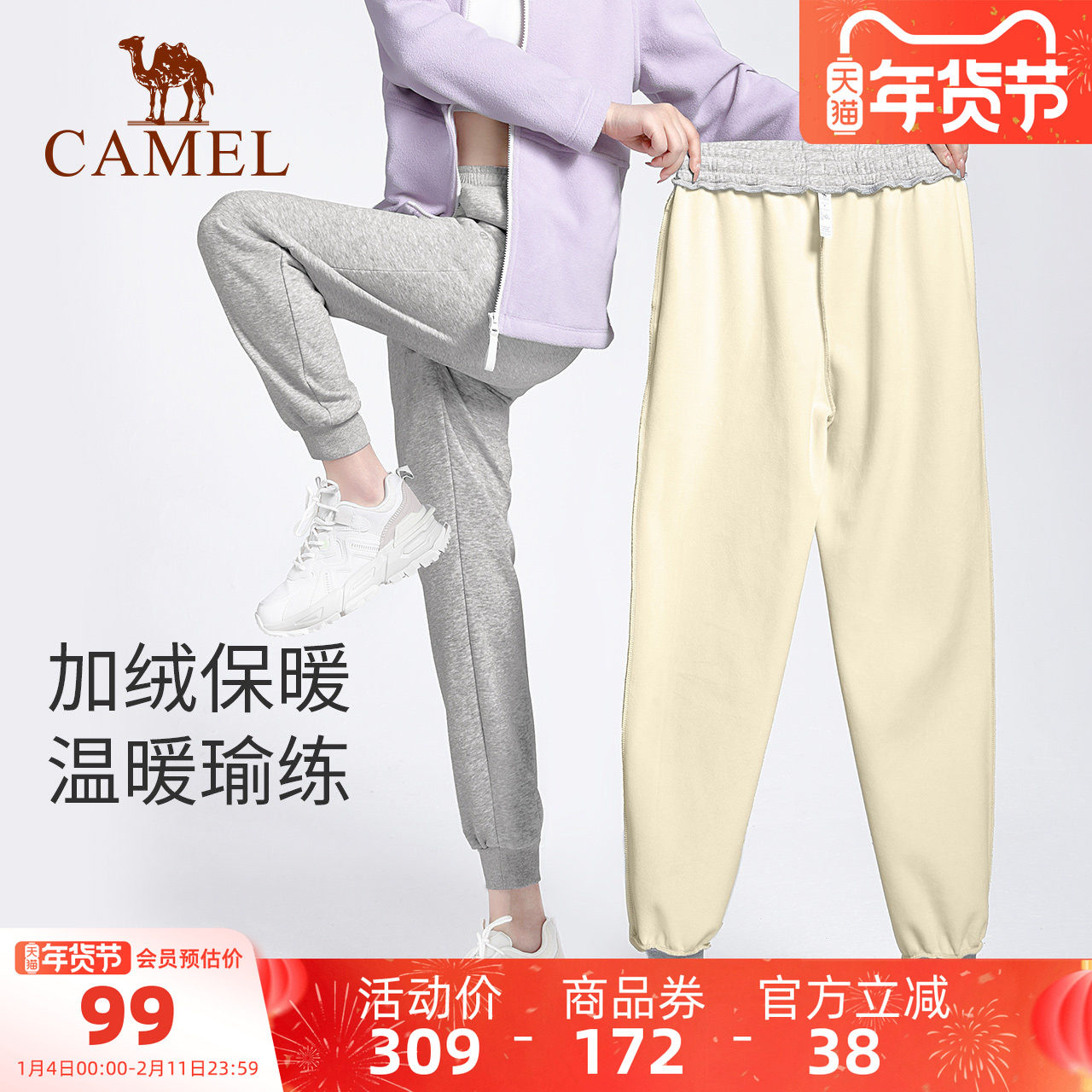 骆驼羊羔绒运动裤男士秋冬季裤子加绒加厚束脚长裤保暖休闲卫裤女