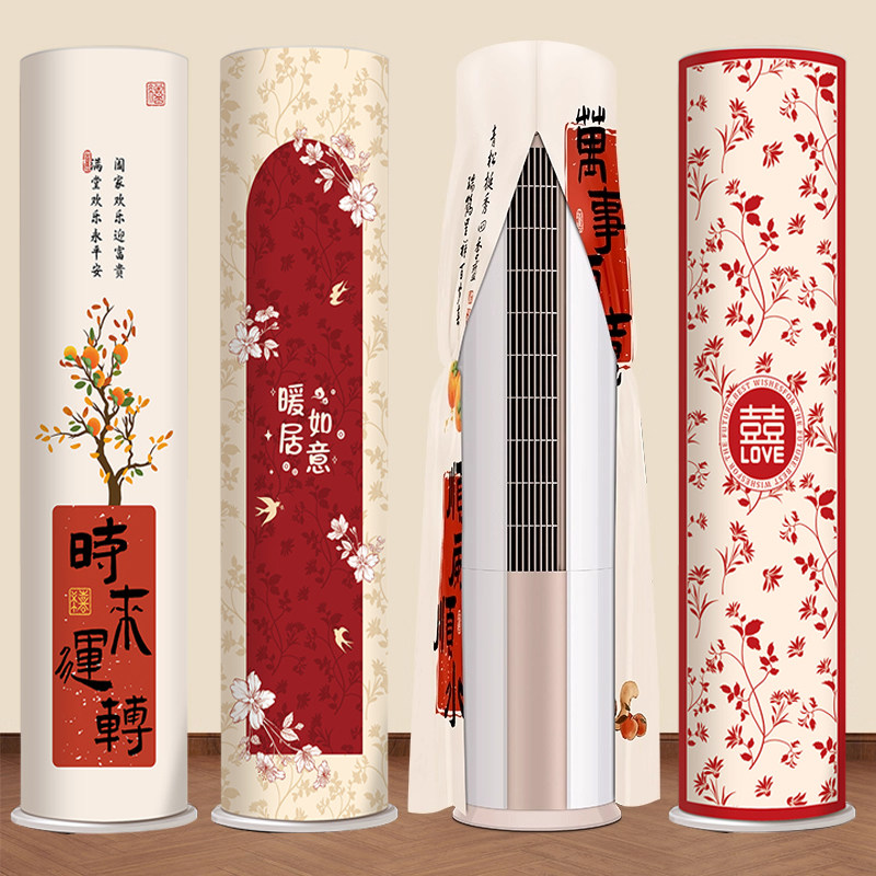 圆柱形空调罩防尘套品牌通用新中式高级感开机不取柜式圆形空调罩