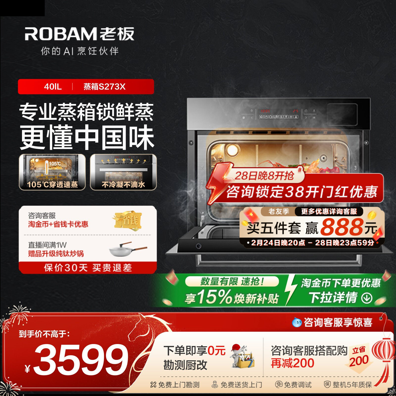 老板蒸箱家用S273X嵌入式大容量智能电蒸炉智能老板官方旗舰店40L