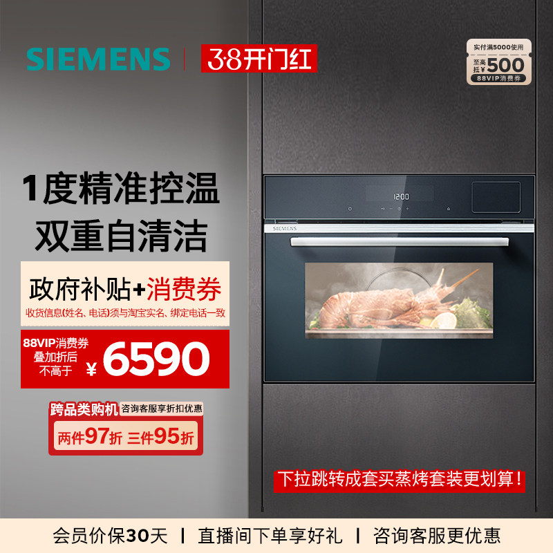 西门子嵌入式电蒸箱智能自清洁专业家用大容量精准控温CD589