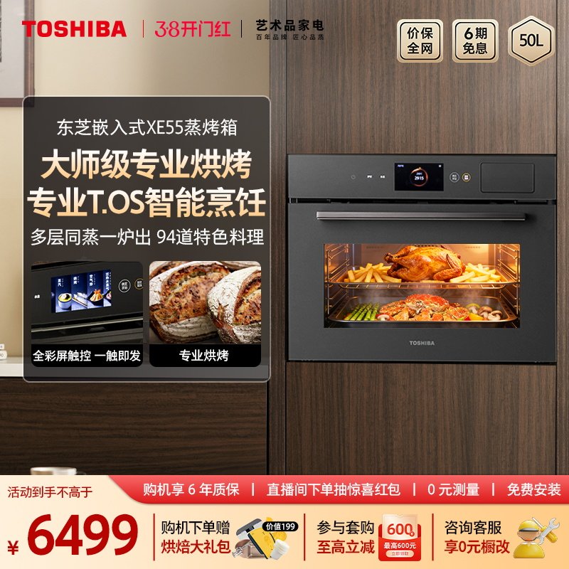 东芝水波炉嵌入式电蒸箱电烤箱家用55L蒸烤炸炖一体机XE55全嵌入
