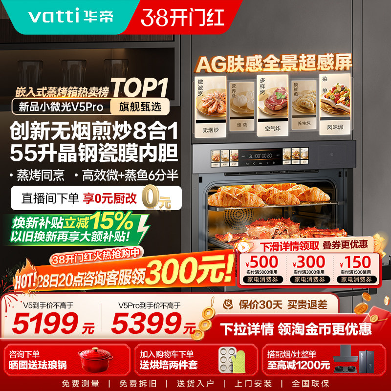 华帝小微光V5Pro微蒸烤一体机8合1嵌入式蒸烤箱家用电蒸箱微波炉