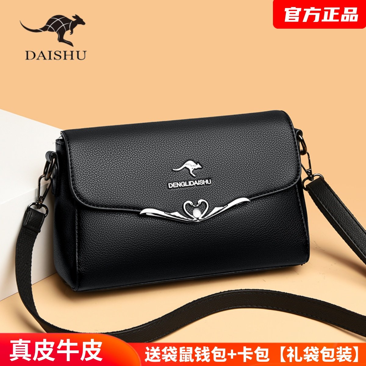 袋鼠真皮妈妈包中老年女包2025新款百搭婆婆软皮包单肩斜挎包小包