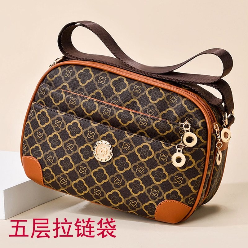 三层斜挎包新款时尚印花中老年女包百搭简约女士单肩包大屏手机包
