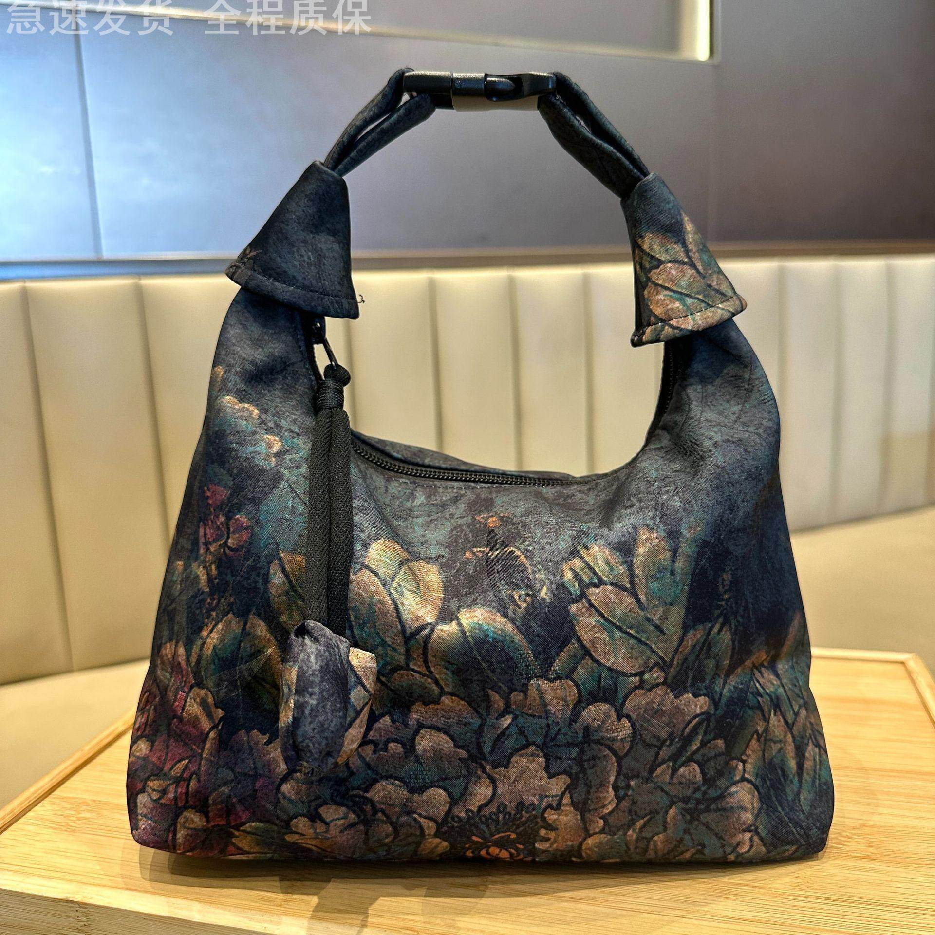 2024新款花布尼龙包单肩包女斜挎包韩版中老年女包时尚妈妈包布包