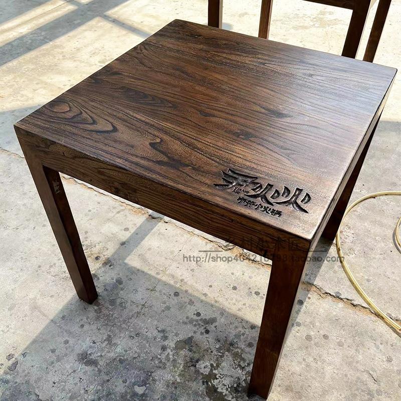 漫咖啡老榆木餐桌椅面馆酒馆快餐民宿原木实木小方桌长桌椅子定制