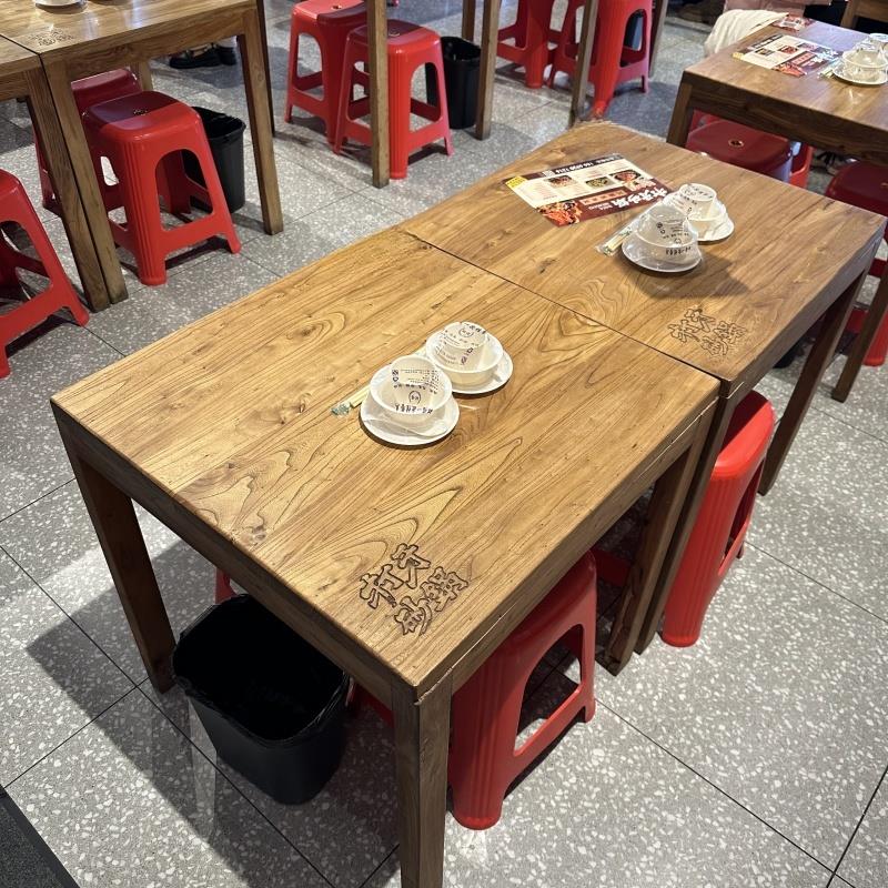 老榆木餐桌砂锅米线火锅面馆餐饮店原木复古简约全实木双人方桌椅