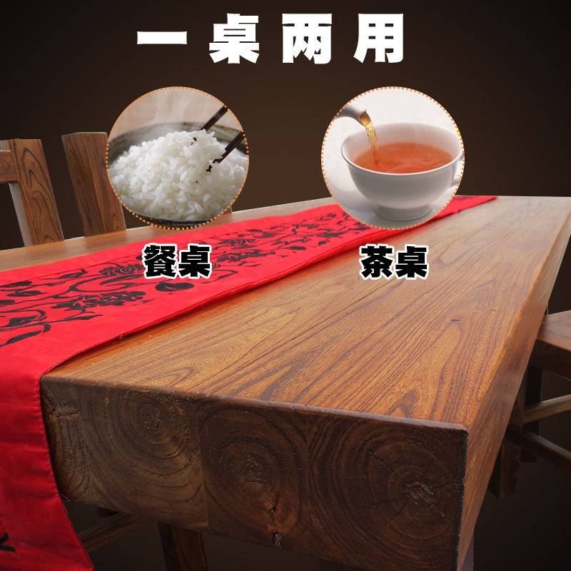 古榆情怀老榆木餐桌原木六人全实木家具多功能长方形茶饭桌子定制