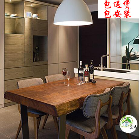 老榆木餐桌全实木厚面餐桌饭店桌子原木办公桌长方形餐桌简约现代