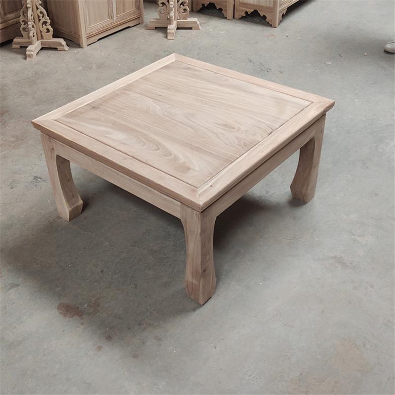 新中式实木小户型桌子北老榆木餐桌家用矮方桌白茬白胚白坯小方桌