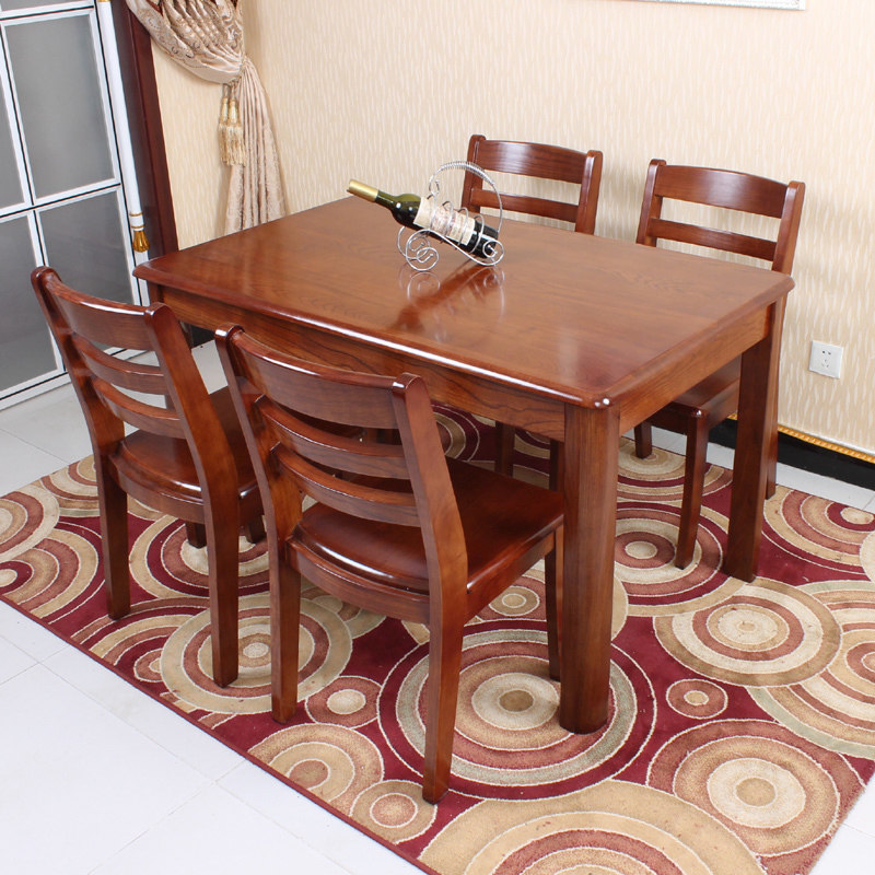 全实木餐桌椅现代中式榆木餐桌椅组合6人中小户型长方形餐台饭桌