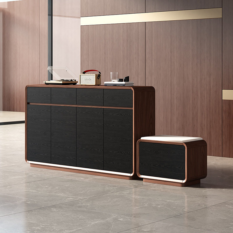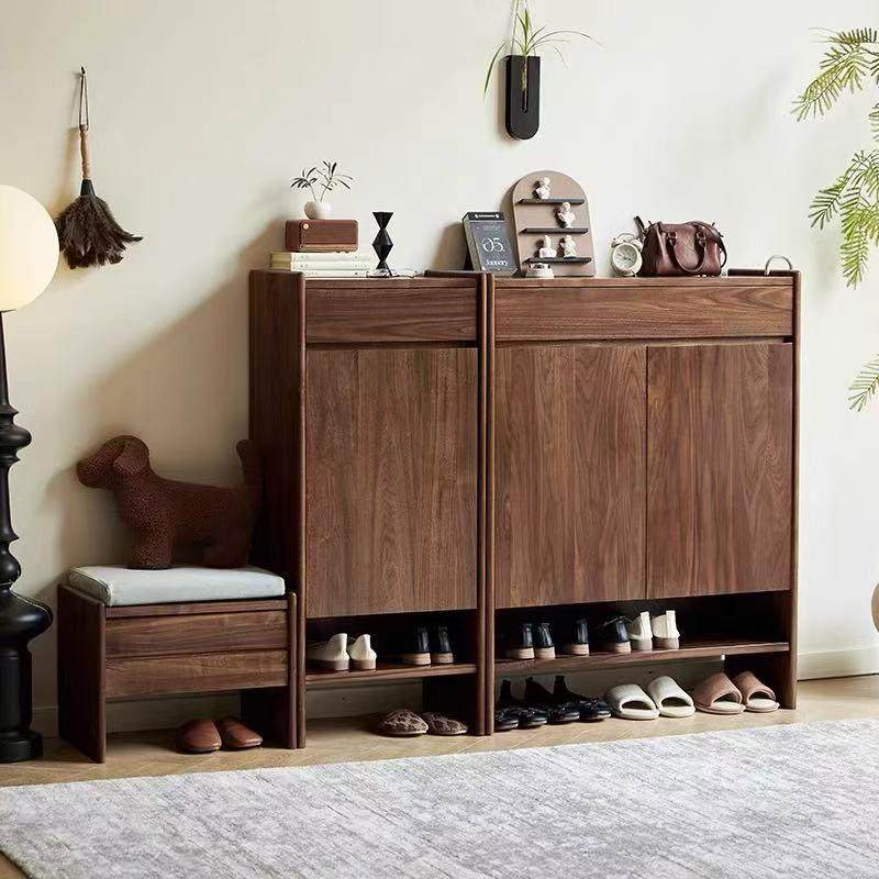 北美黑胡桃木鞋柜家用门口入户玄关柜北欧实木鞋柜换鞋凳组合搭配