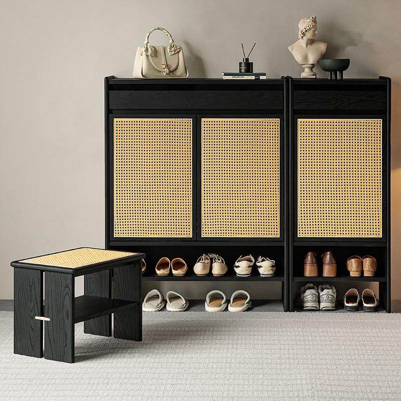 藤编实木鞋柜换鞋凳组合家用入户门玄关柜大容量门口收纳置物鞋架