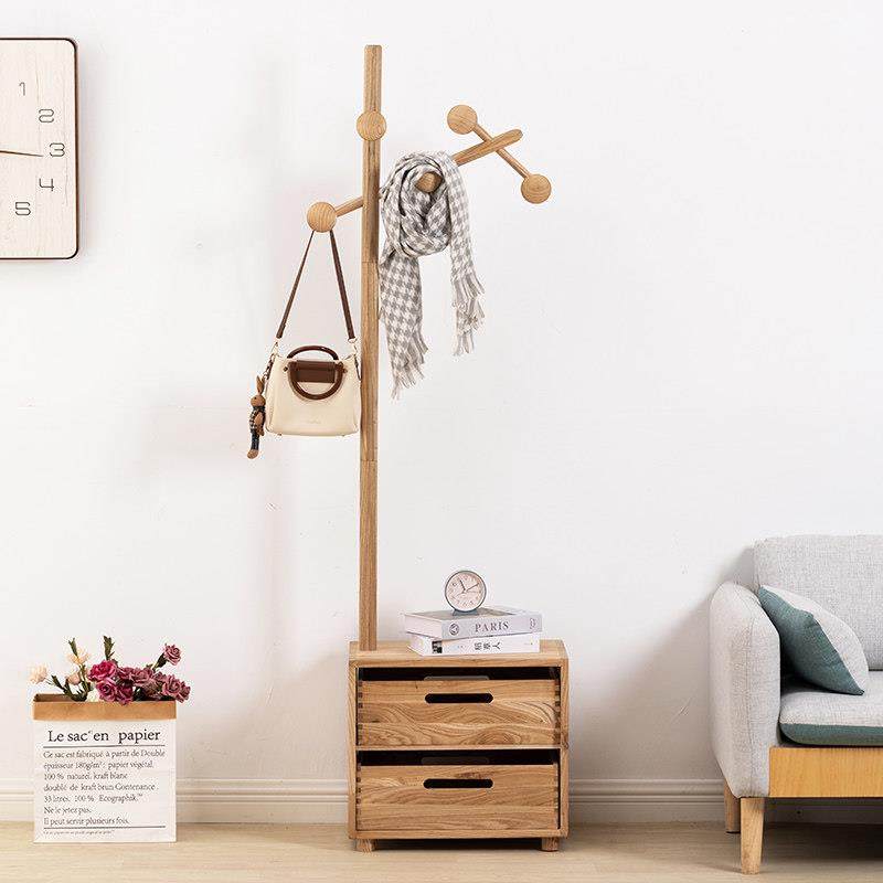 挂衣架带柜子抽屉实木鞋柜换鞋凳一体卧室床边床头柜落地式衣帽架