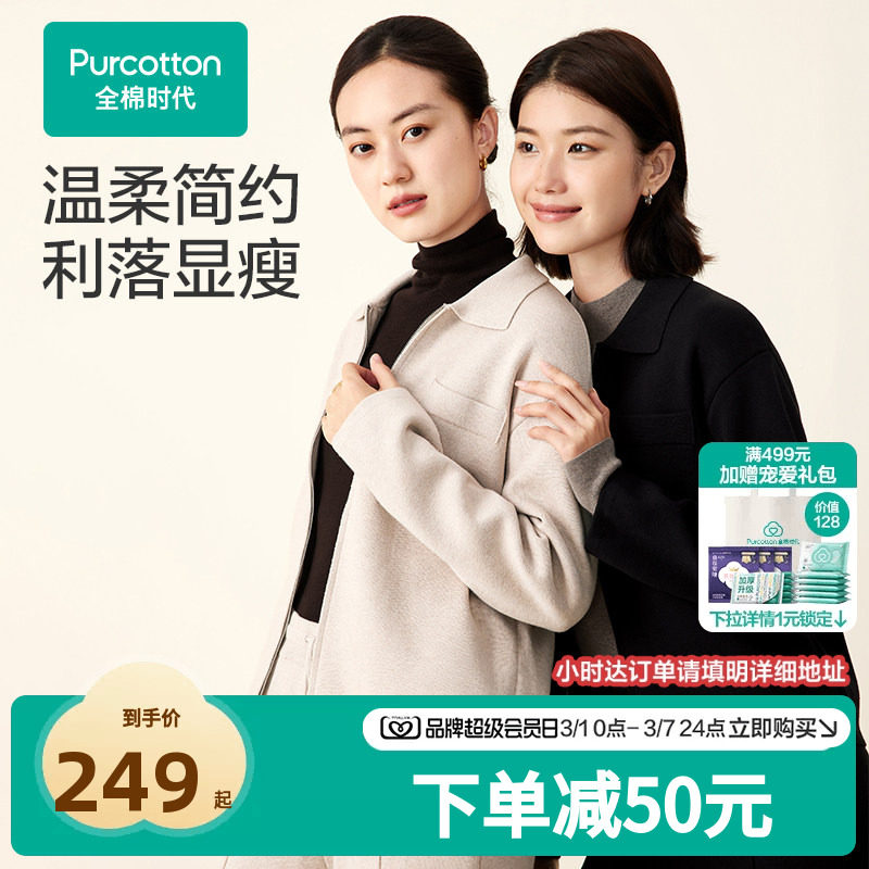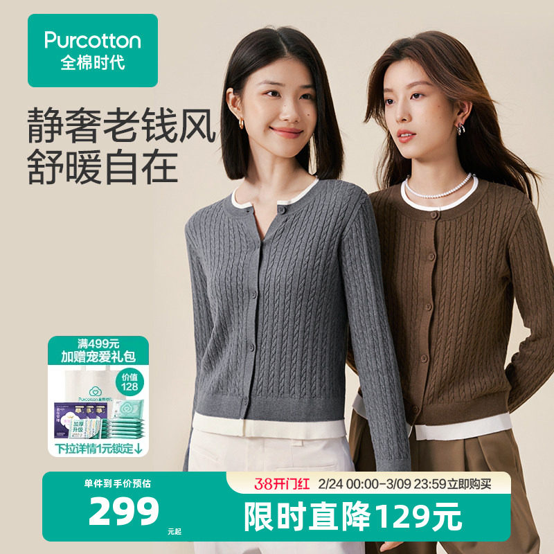 全棉时代女士棉线衣外套老钱风上衣风柔棉通勤毛衣开衫秋装针织衫