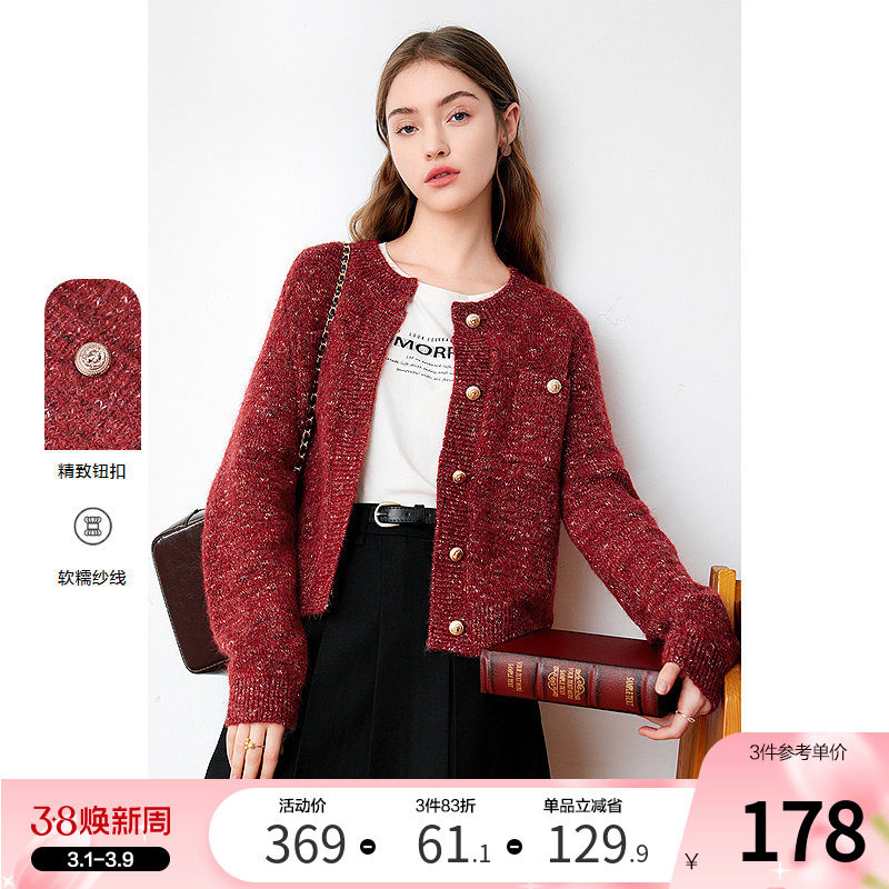 betu百图女2026年春季新款法式红色小香风针织开衫毛衣短外套