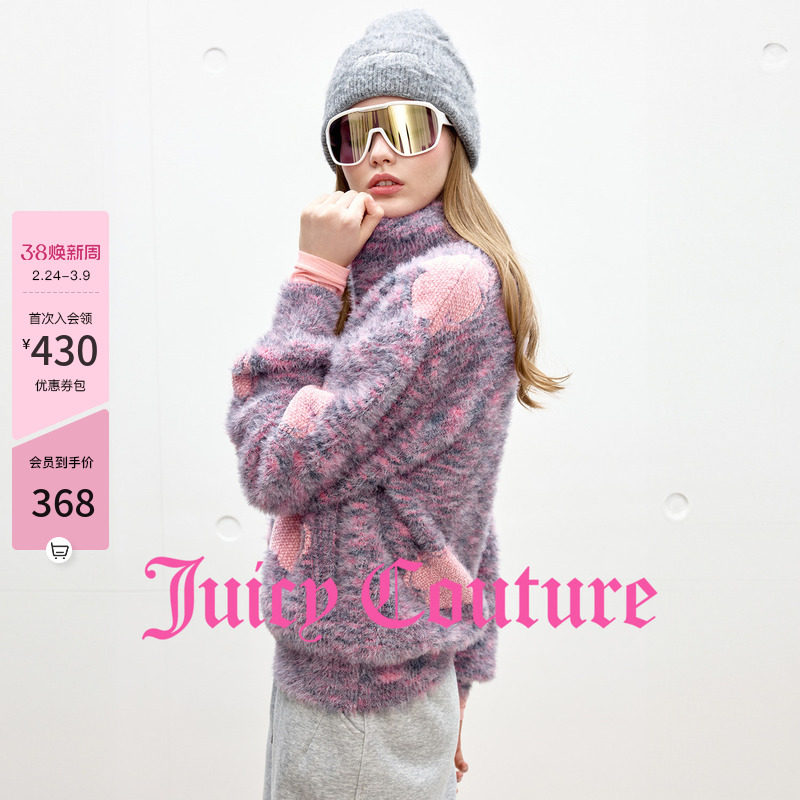 Juicy Couture橘滋外套女加厚立领毛绒保暖提花针织毛衣开衫上衣