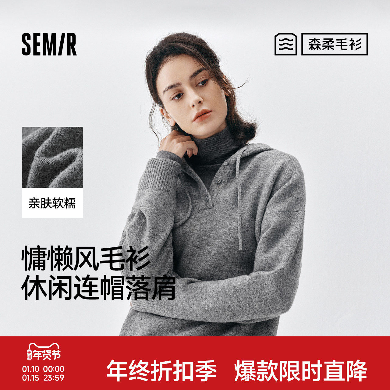 商场同款|森柔森马毛衣女冬季连帽卫衣外套2025新款简约百搭毛衫