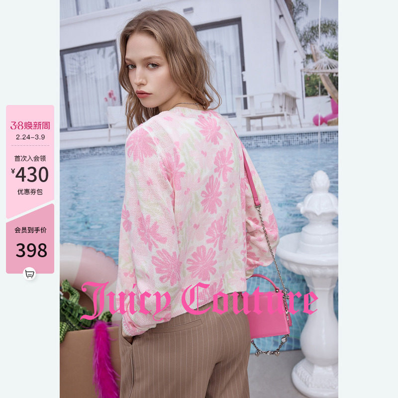 Juicy Couture橘滋外套女26春季新款撞色花朵印花针织薄毛衣开衫