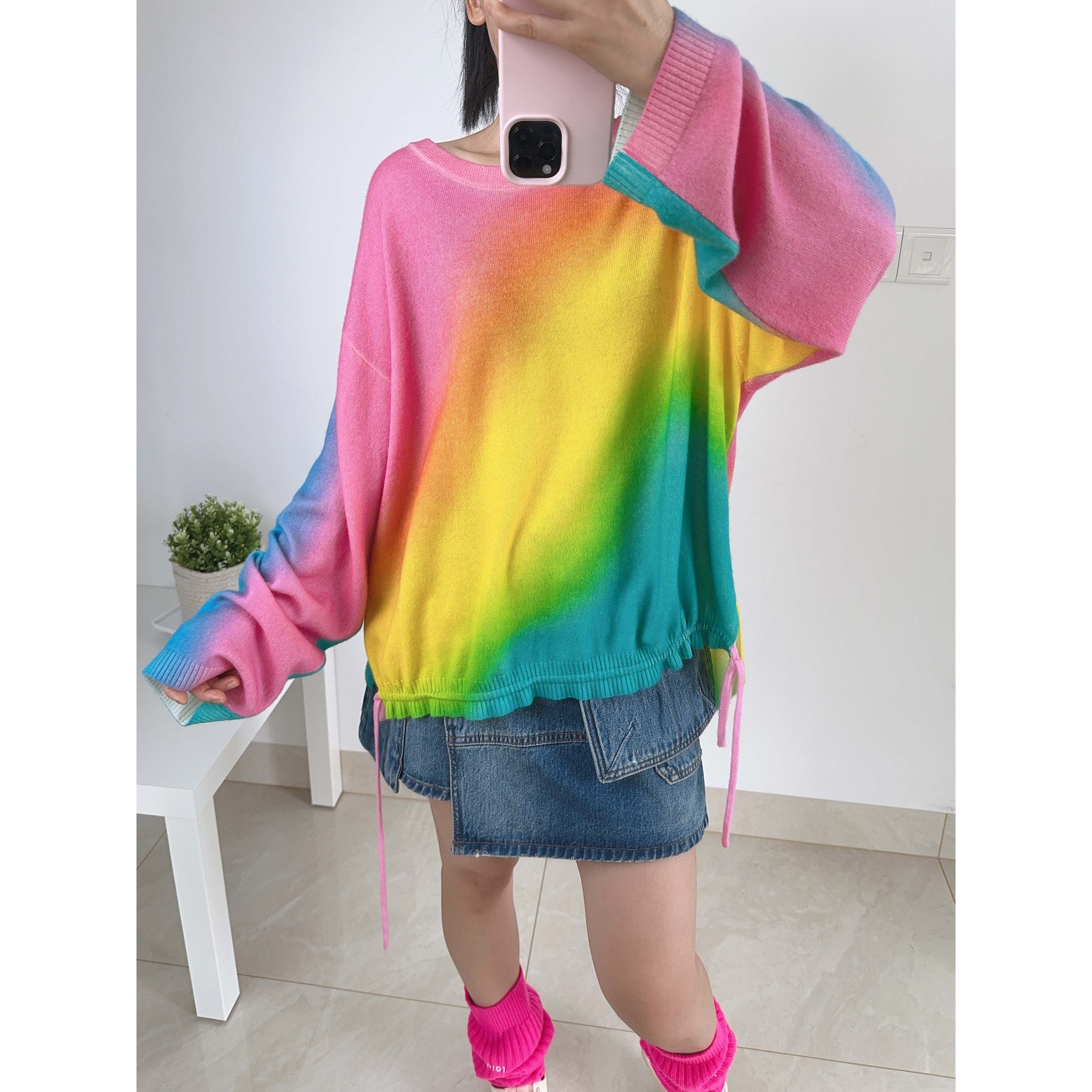 6号衣橱 l 意大利山羊绒 衣摆抽绳彩虹色 宽松圆领针织衫(少量)