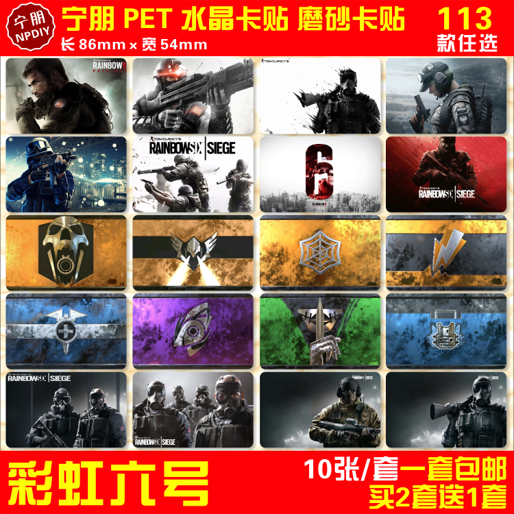 彩虹六号水晶卡贴游戏周边彩虹6号围攻全职业饭卡交通公交卡贴纸