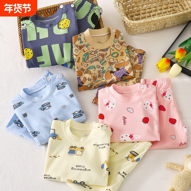 宝宝无骨缝秋衣秋裤棉男童女童长袖儿童保暖内衣套装睡衣小孩纯棉