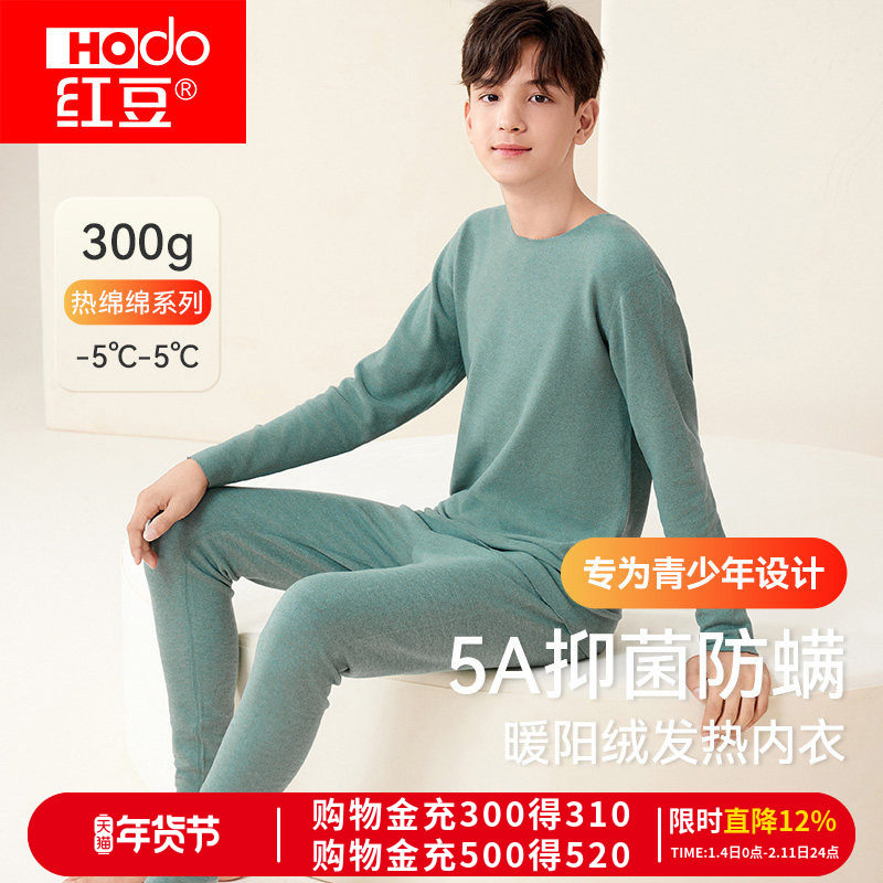 【热星人】红豆居家儿童德绒柔软保暖内衣发热加厚秋衣秋裤棉毛衫
