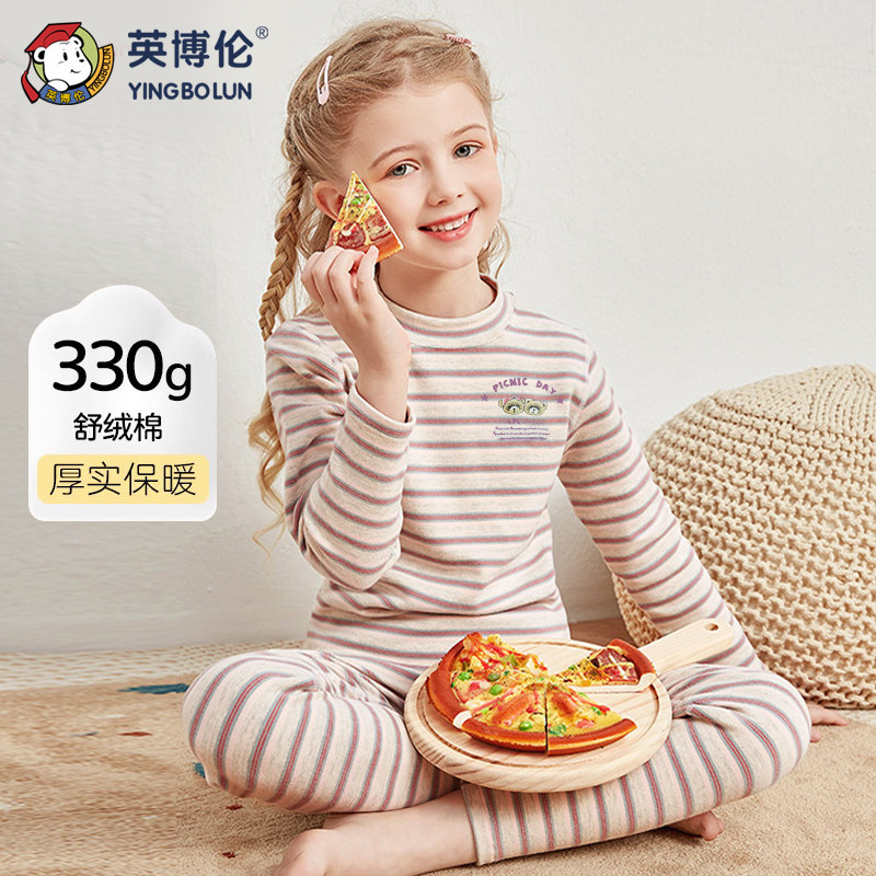 英博伦女童保暖内衣套装加厚纯棉儿童秋衣秋裤棉毛衫秋冬睡衣中领