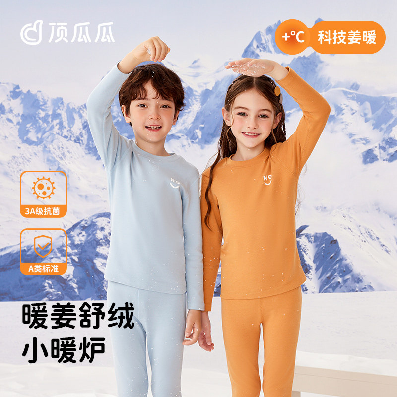 顶呱呱儿童保暖内衣套装秋冬季加厚暖姜男女童打底秋衣秋裤棉毛衫