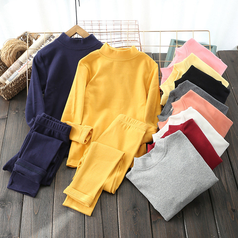 儿童加厚中高领内衣套装纯色男童女童学生保暖纯棉秋衣秋裤棉毛衫