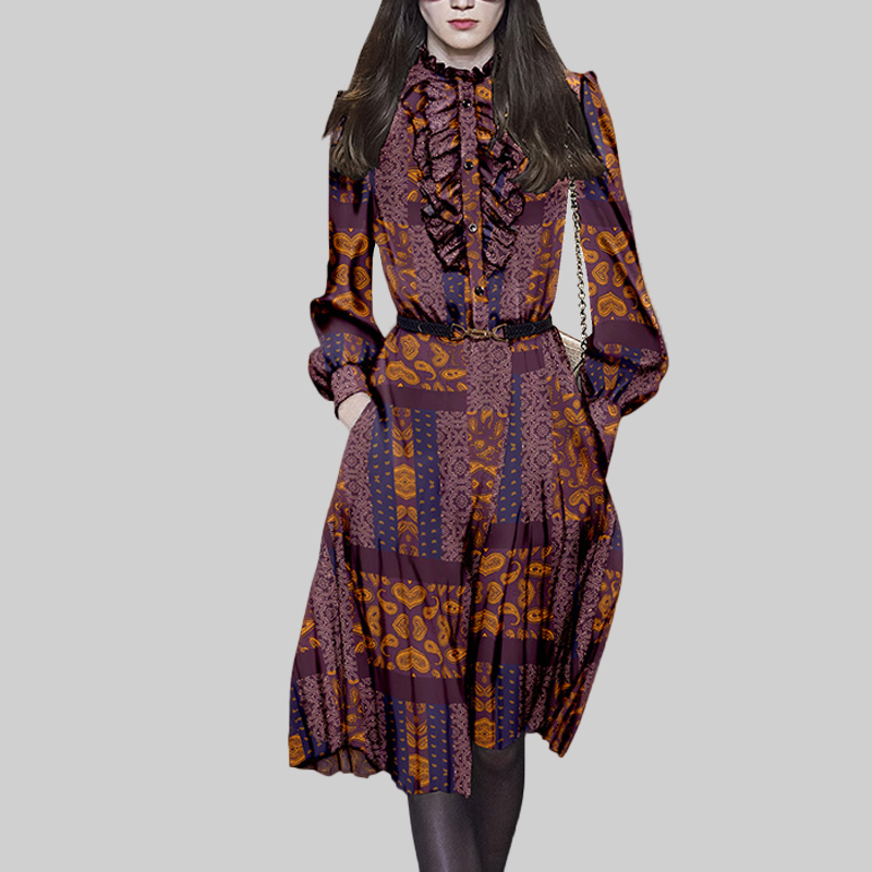- 雪纺秋长裙长袖连衣裙