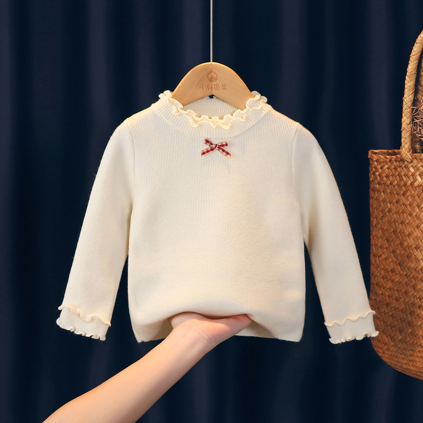 女童秋冬打底衫毛衣木耳白色修身内搭加绒婴儿洋气一岁宝宝针织衫